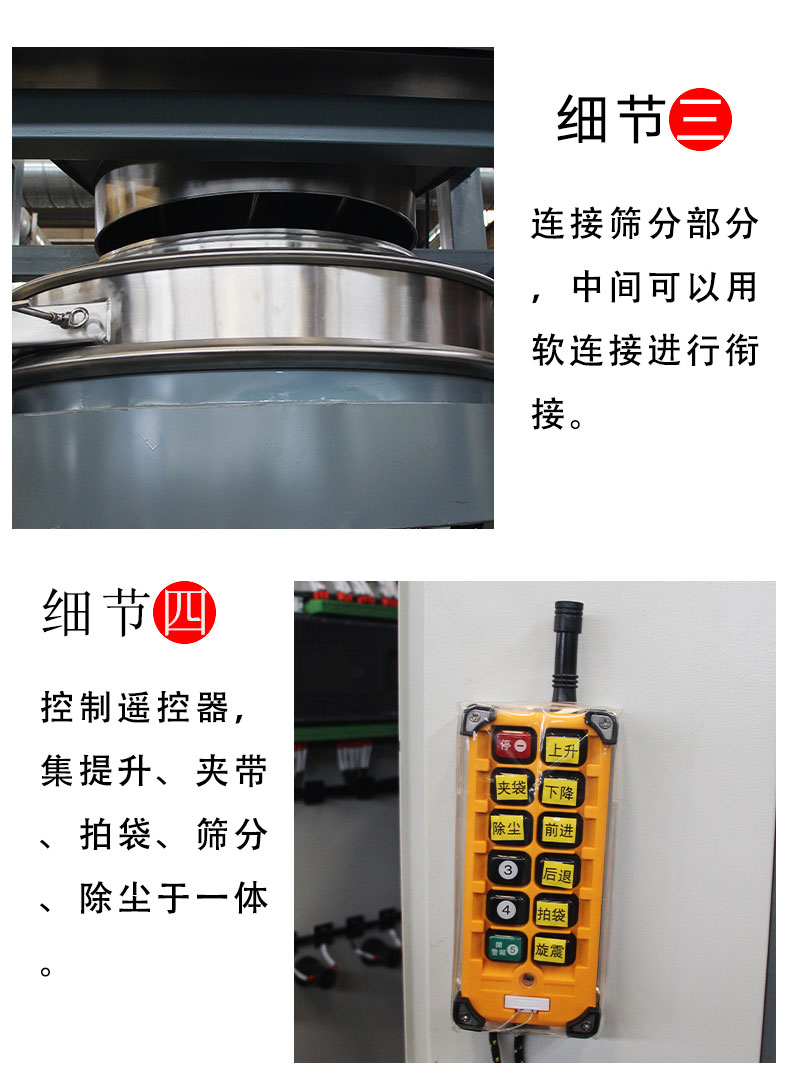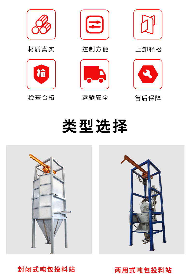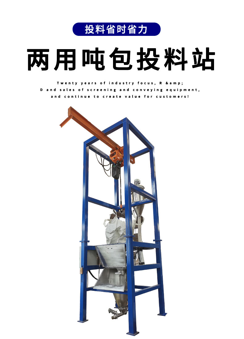 【物料要求】:粉末顆粒物料 【產(chǎn)品簡述】:噸包投料站解決了噸包物料在投料過程中有粉塵飛揚的現(xiàn)象,使用收塵裝置,解決粉塵飛揚...